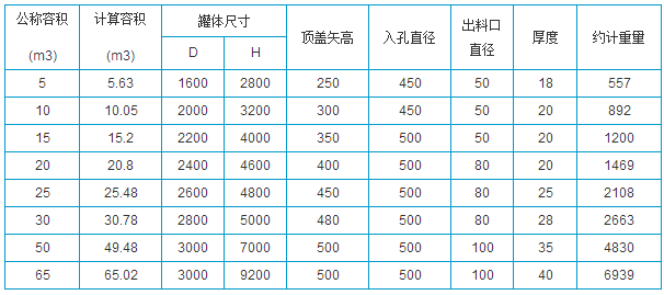 玻璃鋼立式容器參數(shù)表